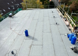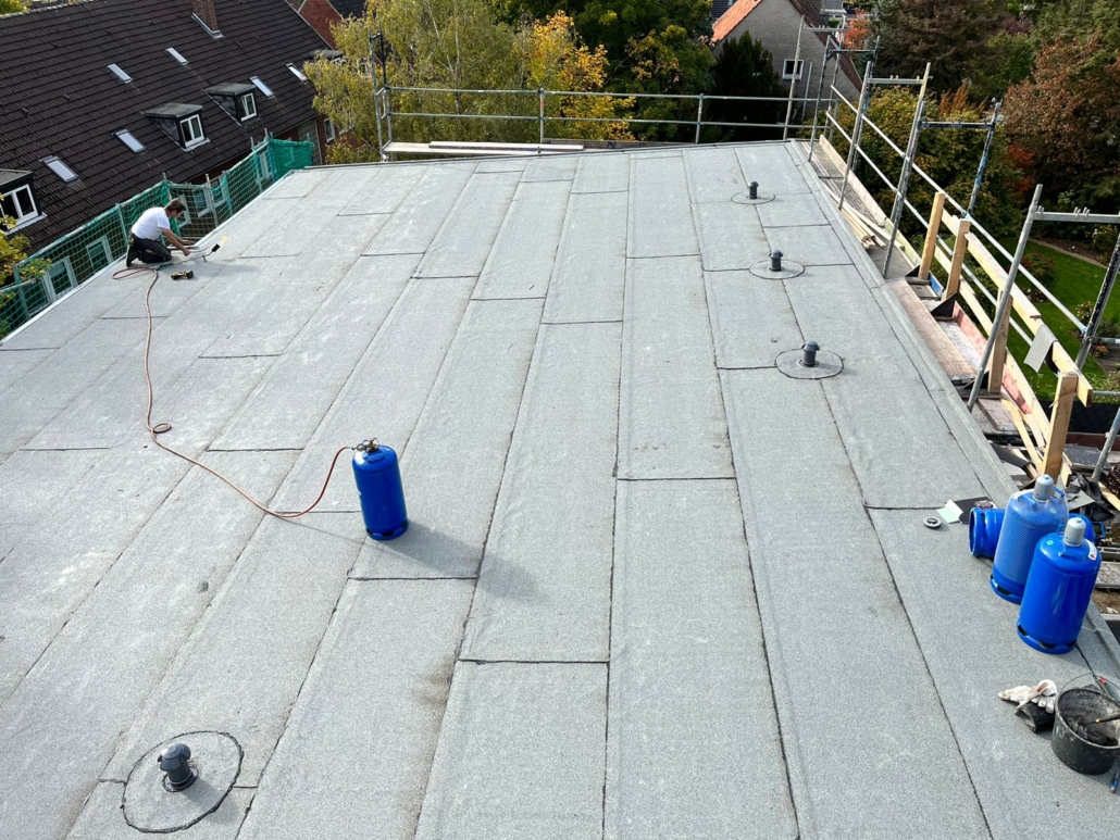 Flachdächer haben besondere Ansprüche an Abdichtung und Pflege. Ohne eine fachgerechte Abdichtung kann es bei Flachdächern schnell zu Feuchtigkeits- problemen und -schäden an der Bausubstanz kommen. Wir sind Ihr kompetenter Partner für Flachdachabdichtungen. Ob Bitumen, Kunststoffbahnen oder Flüssigabdichtungen – wir bieten Ihnen optimale Materialien und Techniken für dauerhaften Schutz und eine hohe Widerstandskraft gegen Witterungseinflüsse. Dank unserer langjährigen Erfahrung und dem Einsatz hochwertiger Materialien von namenhaften Herstellern, schaffen wir Abdichtungen, die auch extremen Bedingungen standhalten.